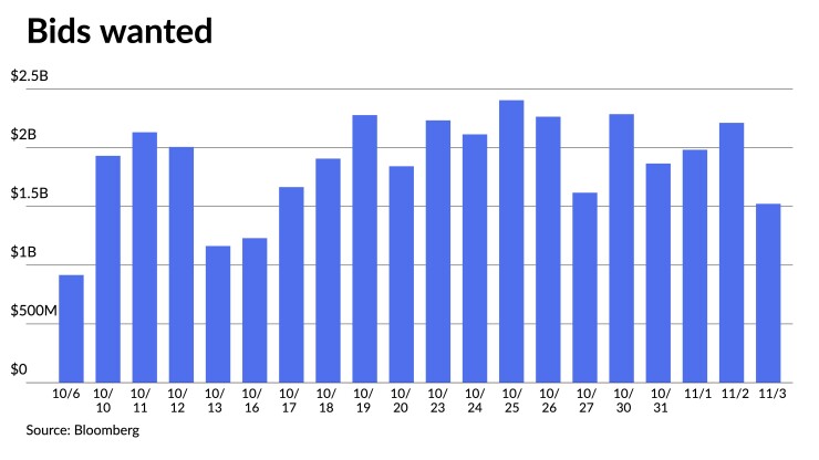 November is off to “a good start as yields have dropped for the first days of the month and have dropped five consecutive days for the first time since June of this year,” said Jason Wong, vice president of municipals at AmeriVet Securities.