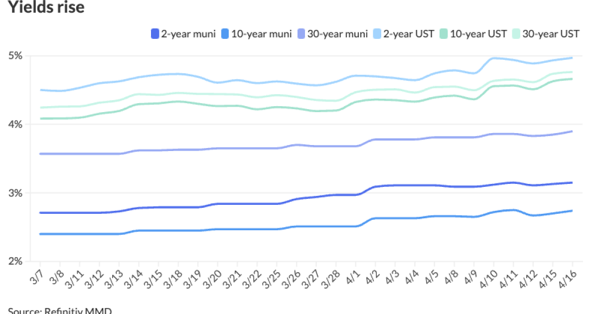 “Our market is amid its worst seasonal trends, with an uptick in small-lot selling last week consistent with tax day, and only grim May reinvestment expectations ahead,” said Matt Fabian, a partner at Municipal Market Analytics, Inc. in a weekly Outlook report.
